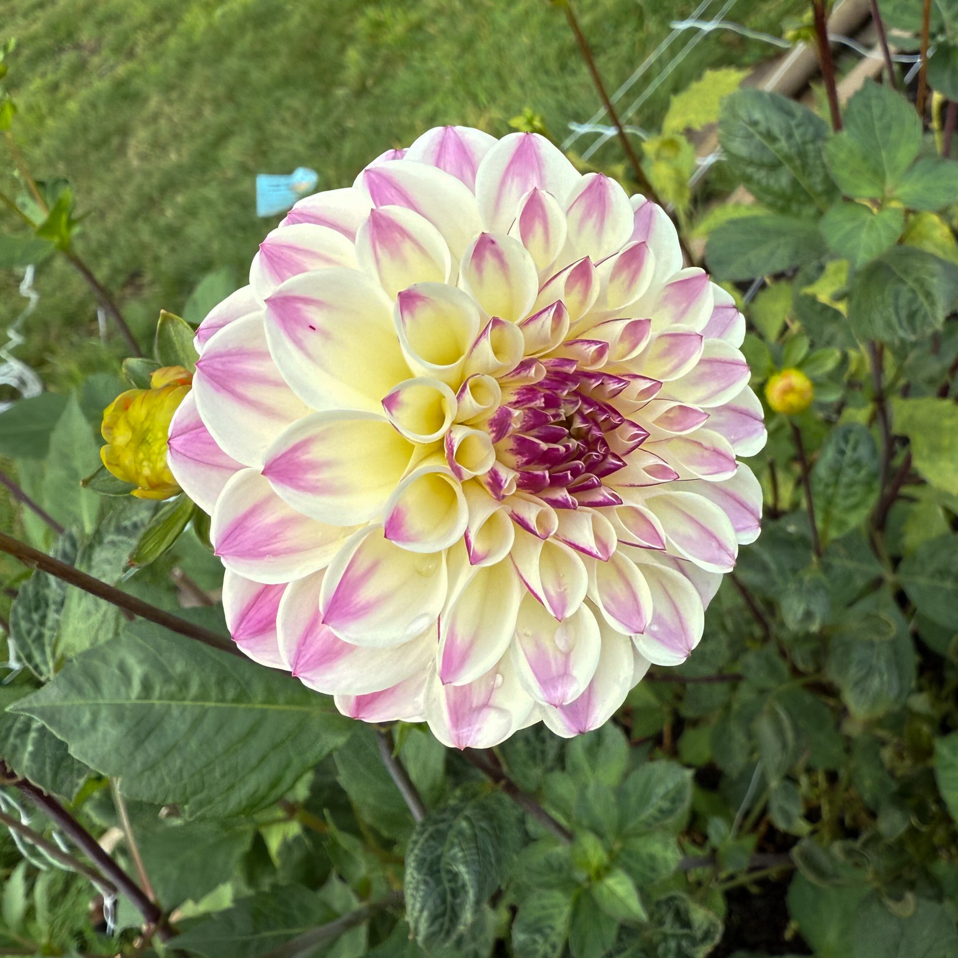 A super unique dahlia featuring white blooms with lavender points, and yellow accents. Truly a stunning bloom to add to bouquets. CB Trevlove grows to 4' tall with dark green foliage.
